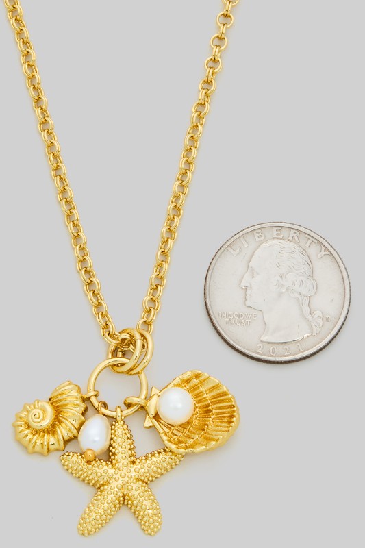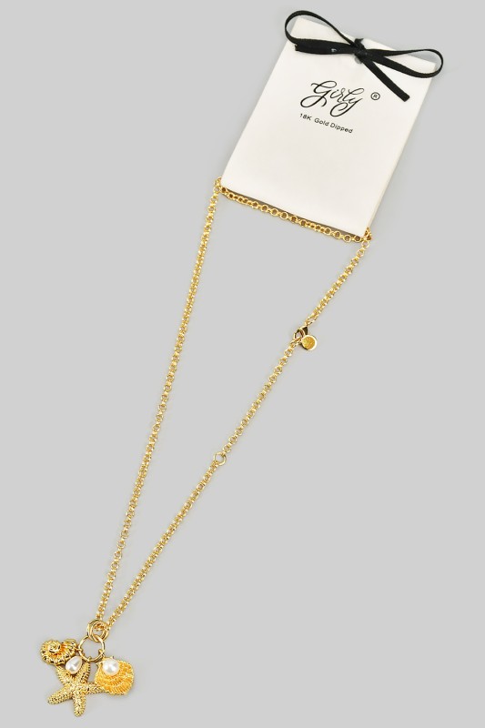 18K Gold Dipped Pearl And Shell Charm Necklace Please register or log in to view prices. Add a touch of elegance to your look with this stunning 18K gold dipped pearl and shell charm neckla…
