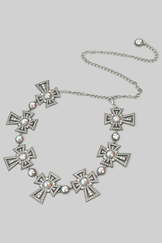 Western Cross Link Chain Belt With Stones Please register or log in to view prices. WESTERN CROSS LINK CHAIN BELT WITH STONES. LENGTH 25-43".Units in Prepack: 2Price per unit: $9.00