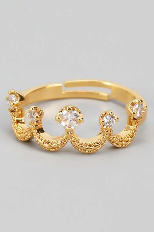 Twisted Brass Crown Ring With Cz Please register or log in to view prices. Add a touch of royalty to your look with this stunning twisted brass crown ring. Sparkling cubic zir…