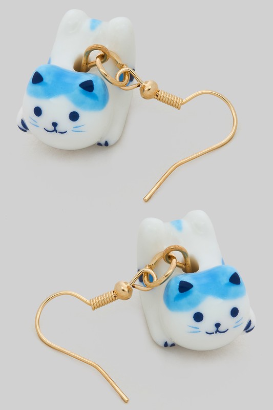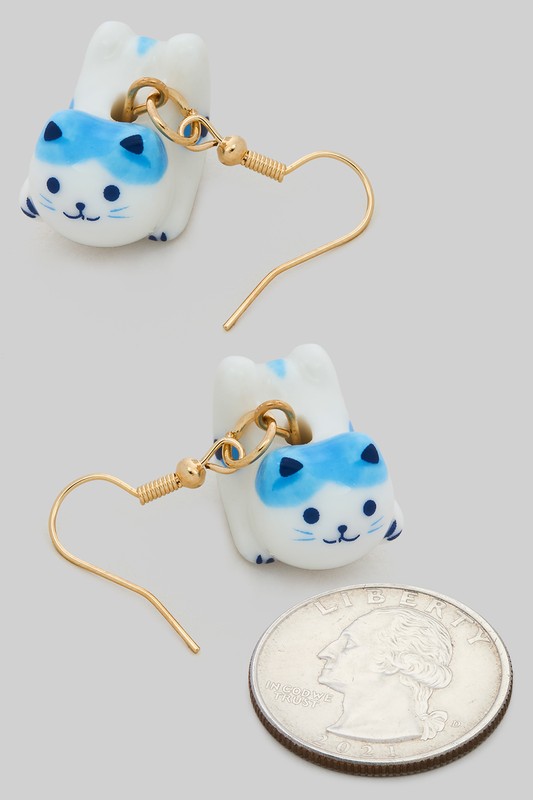 Adorable Porcelain Cat Drop Earrings