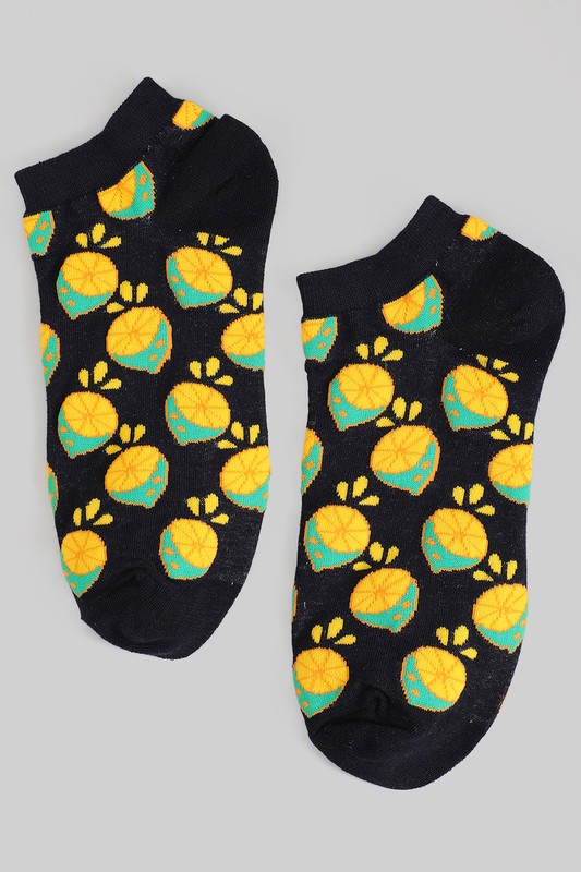 Lemon Print No Show Ankle Socks Please register or log in to view prices. Add a zesty twist to your step with these lemon print no show ankle socks! Made from a comfy blend o…