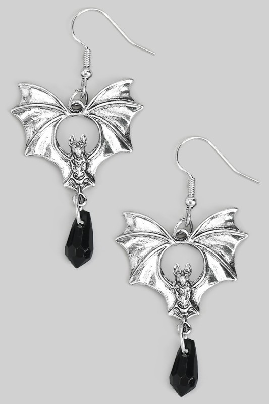 Stone Bat Earrings With Dangling Stone Please register or log in to view prices. Add a bold edge to your look with these stone bat earrings featuring a dangling stone for striking m…