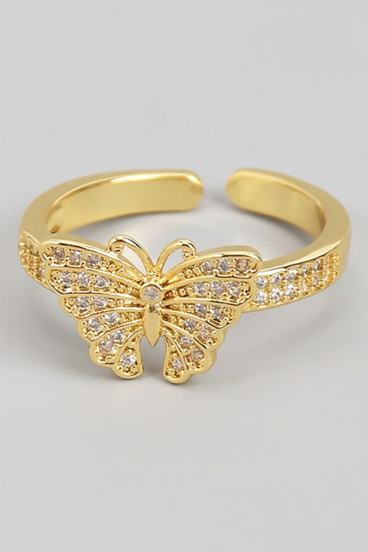 Brass Butterfly Link Ring With Cz Pave Detail Please register or log in to view prices. Flutter into style with this Brass Butterfly Link Ring! Sparkling CZ pave details catch the light ju…