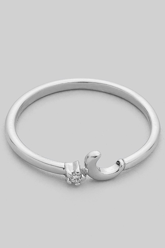 Cz Crescent Moon Ring Please register or log in to view prices. Brass and zircon, rhinestone crescent moon and star open ring. Size 7.Units in Prepack: 2Price per u…