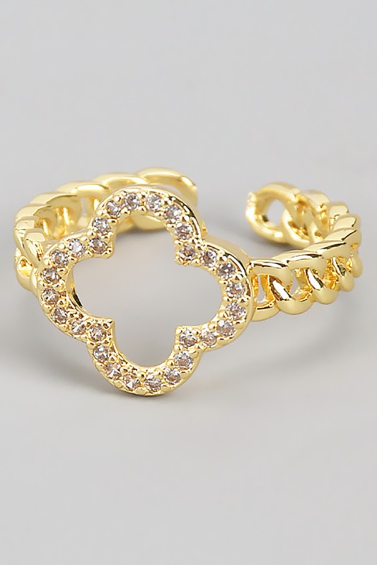 Cz Pave Clover Brass Ring With Pearl Please register or log in to view prices. Elevate any look with this CZ pave clover ring crafted in polished brass. A luminous pearl accent ad…