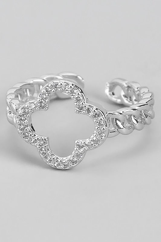 Chain Ring With Cz Pave Clovers Please register or log in to view prices. This elegant chain ring features sparkling CZ pave clovers that catch the light with every movement.…