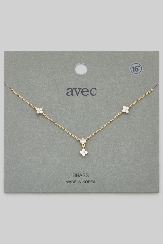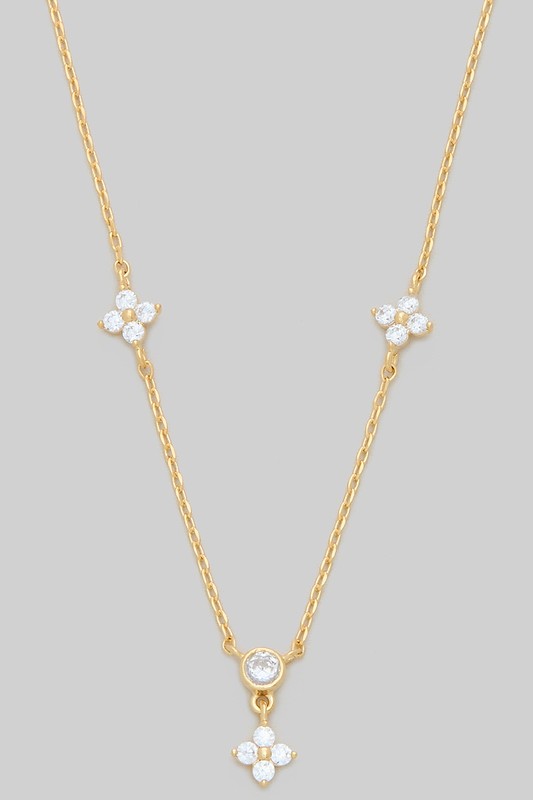 Brass Cz Pave Clover Charm Necklace Please register or log in to view prices. BRASS CZ PAVE CLOVER CHARM NECKLACE. LENGTH 15+2.5".Units in Prepack: 2Price per unit: $6.50