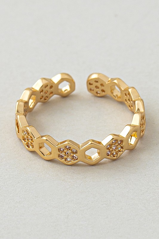 Brass Geo Link Ring With Cz Pave And Pink Stones Please register or log in to view prices. Add a pop of sparkle with this brass geo link ring featuring dazzling CZ pave and charming pink ston…
