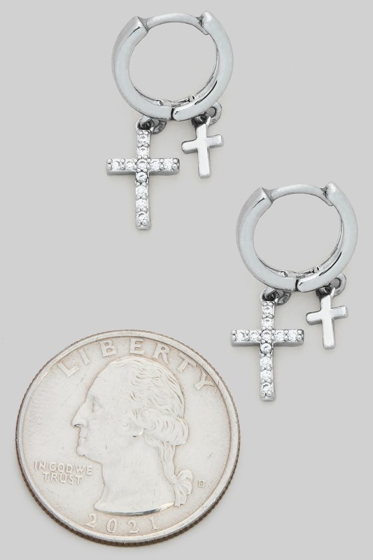 Brass Small Cross With Cz Pave Huggies Please register or log in to view prices. These brass small cross huggie earrings feature a delicate pave of sparkling cubic zirconia for an e…