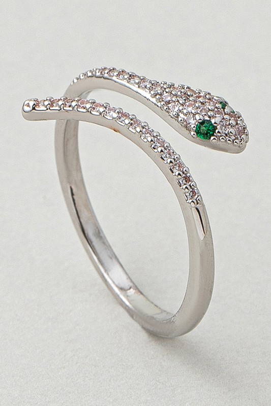 Brass Snake Twist Ring With Cz Pave