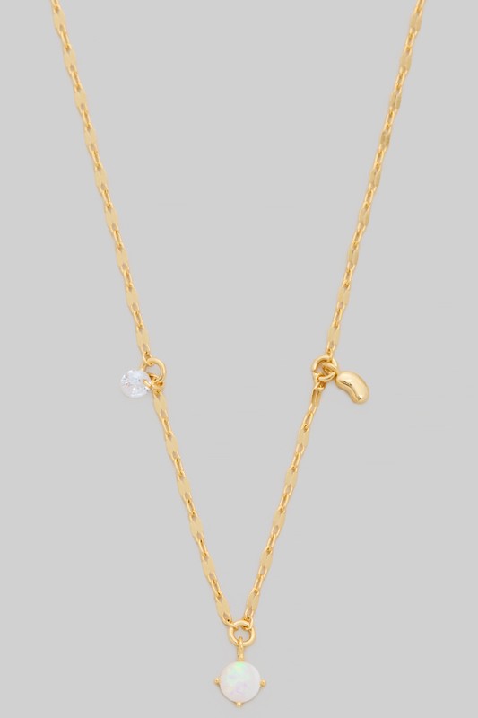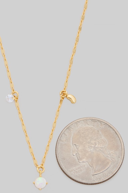 Brass Stone And Cz Dangle Charm Dainty Necklace