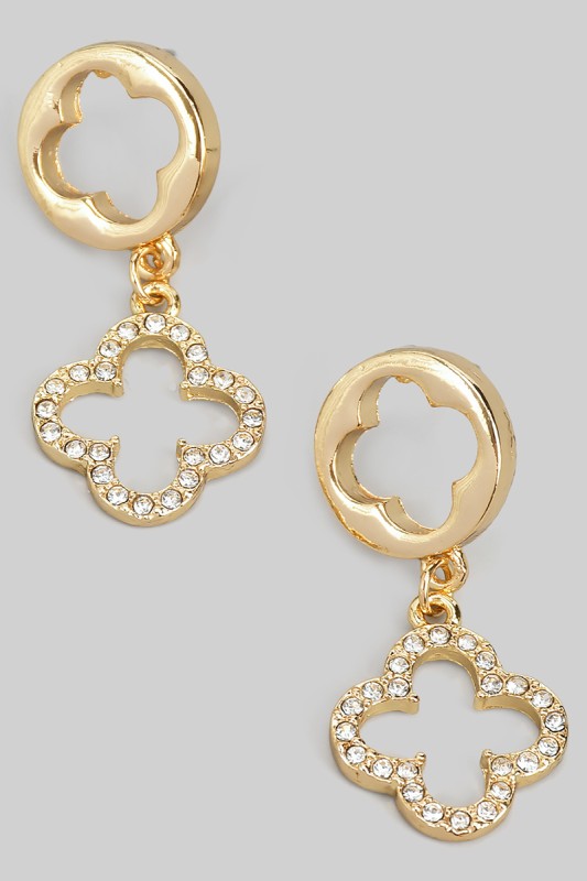 Stone Pave Clover Tiered Drop Earrings Please register or log in to view prices. STONE PAVE CLOVER TIERED DROP EARRINGS. LENGTH 1".Units in Prepack: 2Price per unit: $3.50
