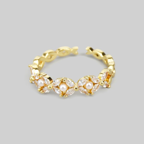 Cz Pave Clover Brass Ring With Pearl Please register or log in to view prices. Elevate any look with this CZ pave clover ring crafted in polished brass. A luminous pearl accent ad…