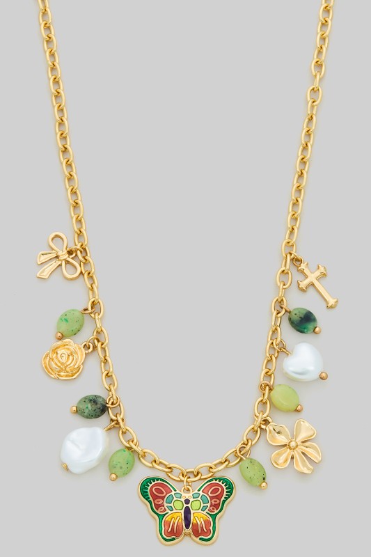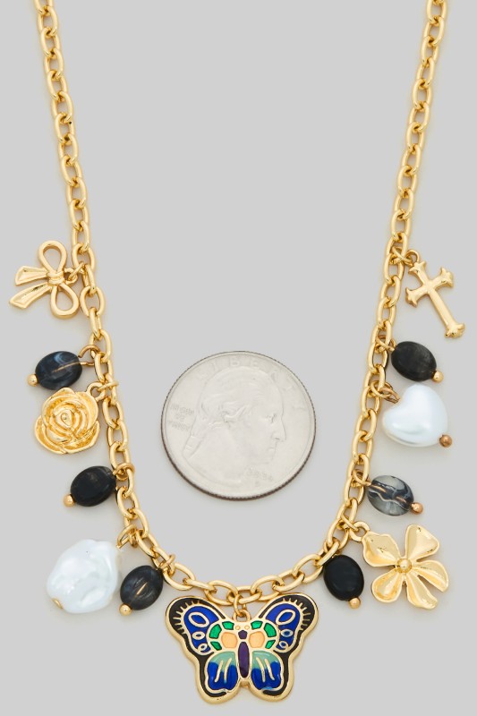 Butterfly Pendant Bead Necklace Please register or log in to view prices. Layered beaded and chain necklace with butterfly pendant. Approx. length 16".Units in Prepack: 2Pric…
