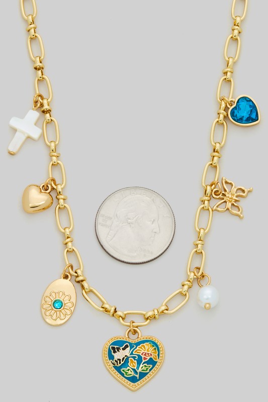 Seven Heart Charm Necklace Please register or log in to view prices. This delicate Seven Heart Charm Necklace features seven dainty heart pendants evenly spaced along a …