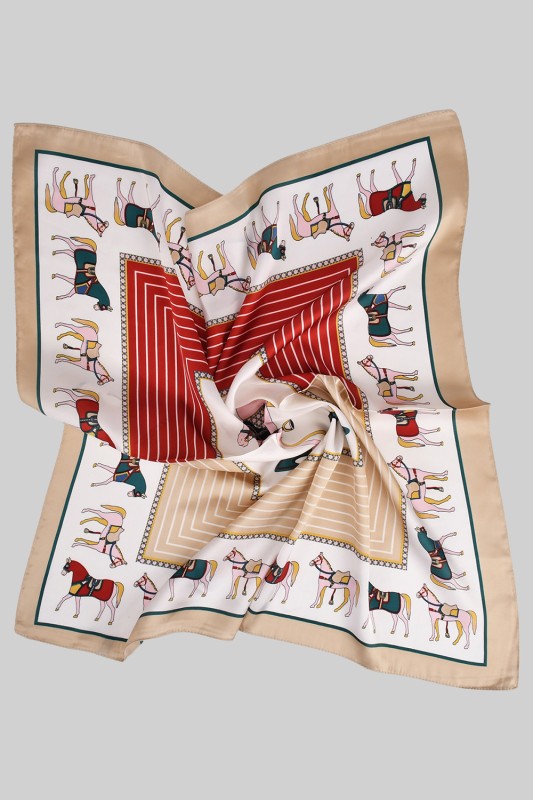 Silky Square Scarf With Chain And Geo Print Please register or log in to view prices. Wrap yourself in luxury with this silky square scarf featuring a chic chain and geometric print. Mea…