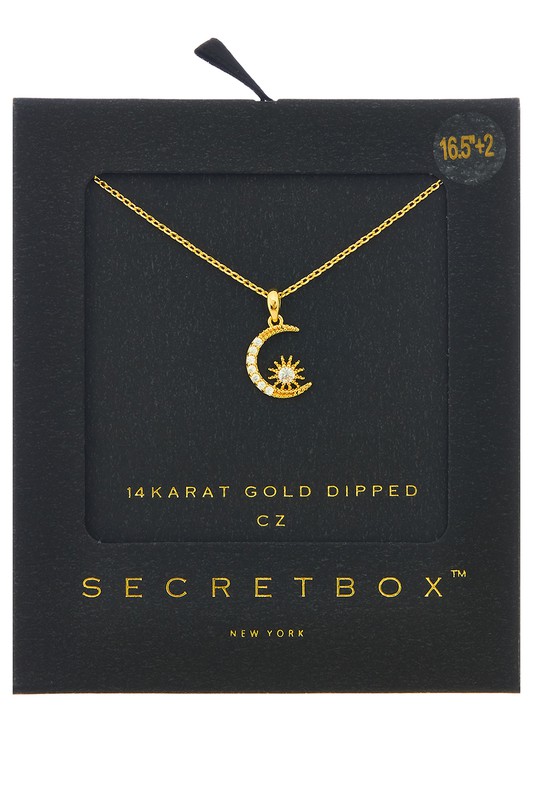 Rescent Moon Pendant Dainty Necklace Please register or log in to view prices. Gold dipped, engraved rhinestone crescent moon tag pendant dainty necklace. Approx. length "16+2". U…