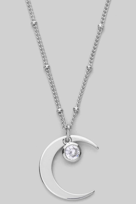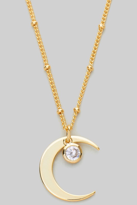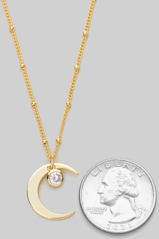 Cz Crescent Moon Pendant Necklace - #NK1316 Please register or log in to view prices. CZ CRESCENT MOON PENDANT NECKLACE. LENGTH 16+3".Units in Prepack: 3Price per unit: $3.00
