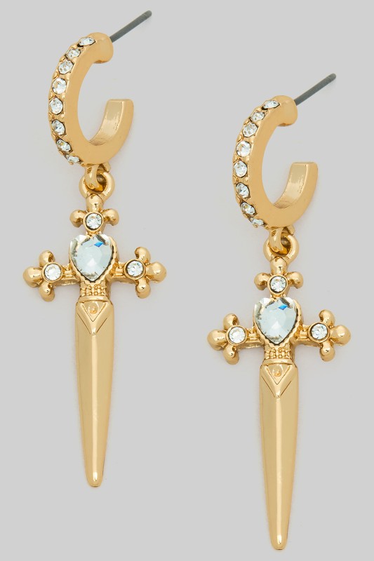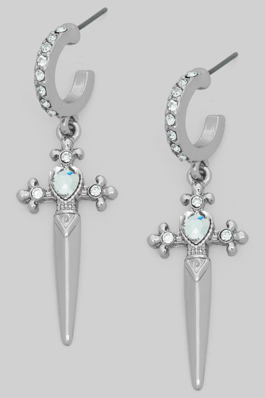 Dangling Cross Charm Hoop Earrings Please register or log in to view prices. DANGLING CROSS CHARM HOOP EARRINGS. LENGTH 2.5".Units in Prepack: 2Price per unit: $3.50