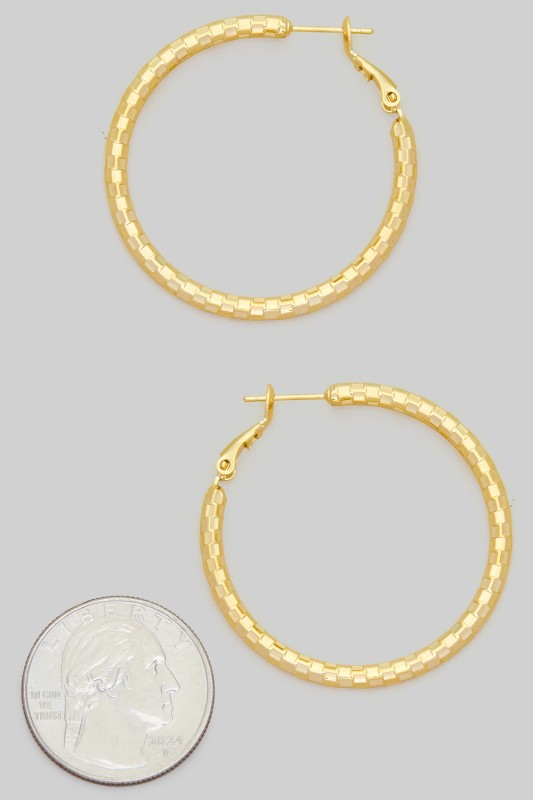Brass Hoop Earrings With Slight Textured Edges Please register or log in to view prices. Add a touch of elegance to any outfit with these brass hoop earrings. Featuring slightly textured ed…