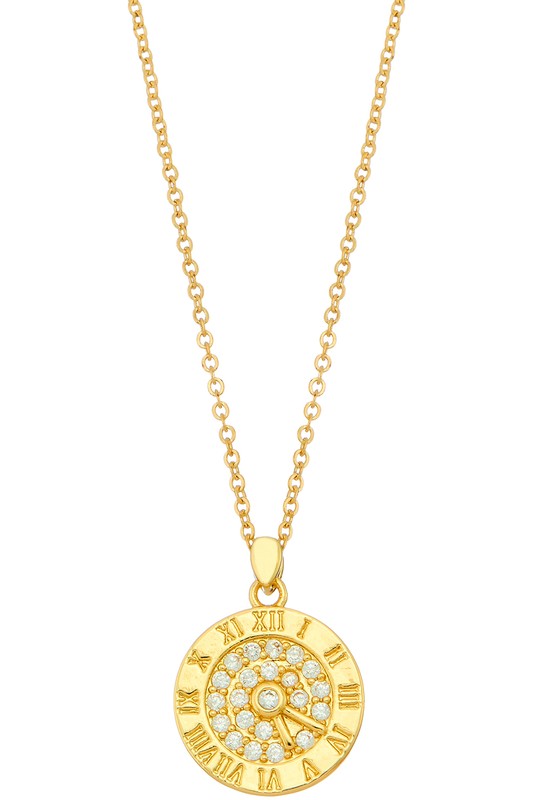 Cz Clock Pendant Necklace