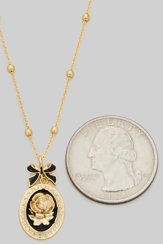 Dainty Rose Oval Pendant Necklace Please register or log in to view prices. Add a touch of romance with this dainty rose oval pendant necklace. The delicate floral design gives…