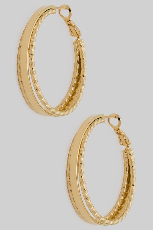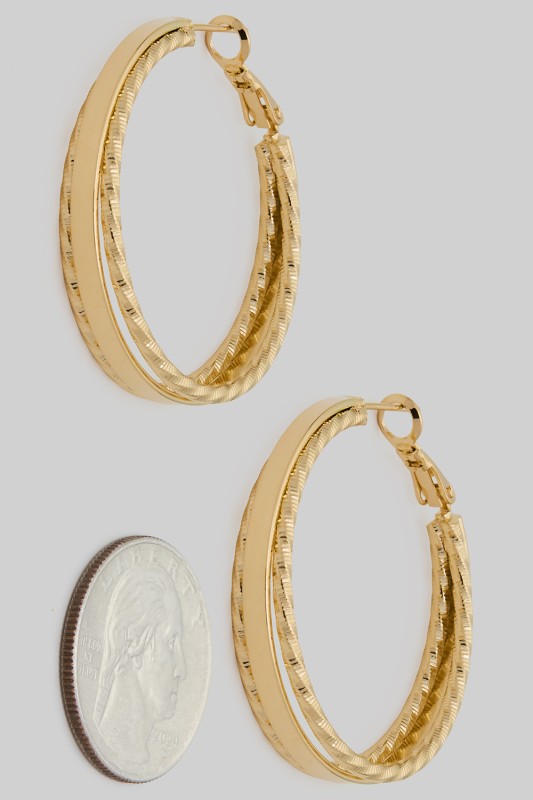 Diamond Cut Stacked Brass Hoops Please register or log in to view prices. Turn heads with these diamond cut stacked brass hoops. Their shimmering texture and bold 1.25" width…