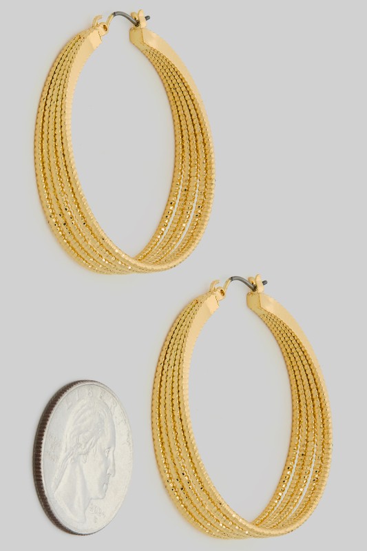 Diamond Cut Stacked Brass Hoops Please register or log in to view prices. Turn heads with these diamond cut stacked brass hoops. Their shimmering texture and bold 1.25" width…