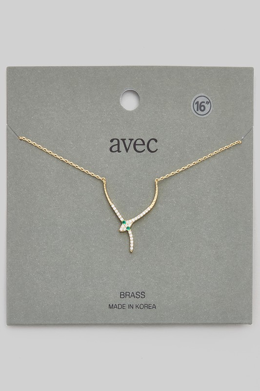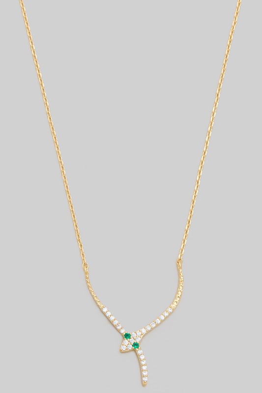 Double Cz Pave Snaked Pendant Necklace