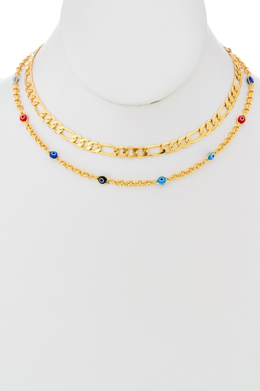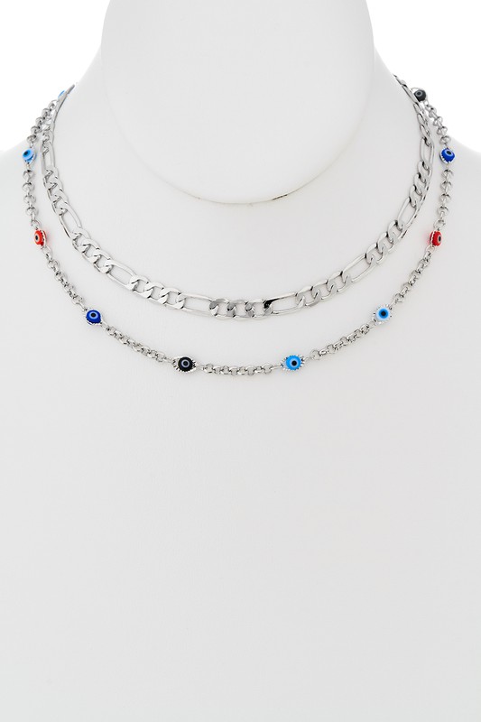 Evil Eye Charm Layered Chokers - #NK1665 Please register or log in to view prices. Two piece choker necklace set with evil eye charm. Approx. Length 12+3"/12.5+3".Units in Prepack: 3P…