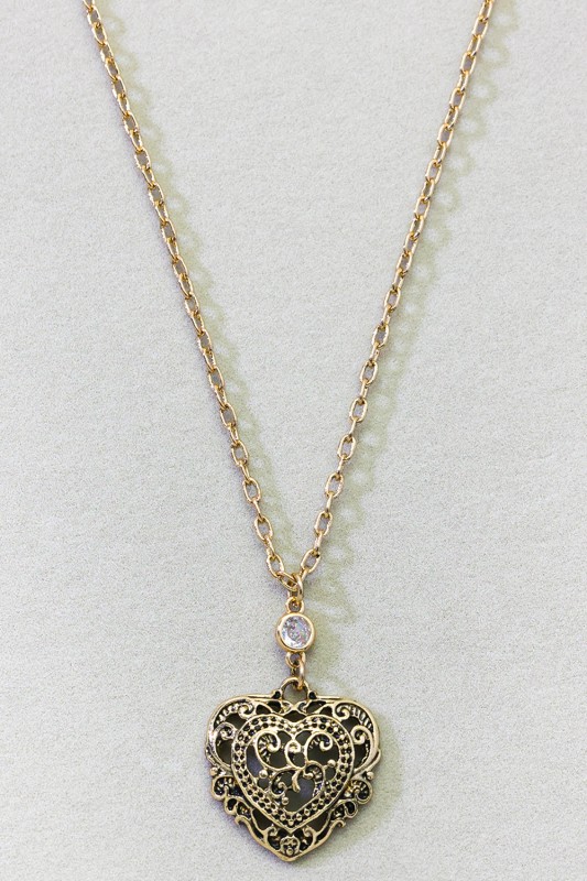 Heart Pendant Necklace - #KN24655 Please register or log in to view prices. HEART PENDANT NECKLACE. LENGTH 14.5+3".Units in Prepack: 2Price per unit: $3.50