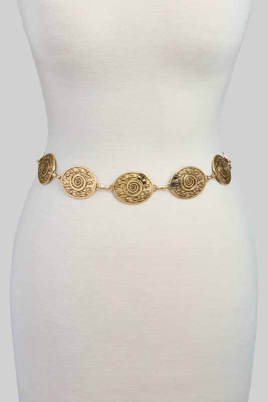 Spiral Link Chain Belt Please register or log in to view prices. Make a statement with our Spiral Link Chain Belt, adjustable from 25 to 40 inches for the perfect fi…