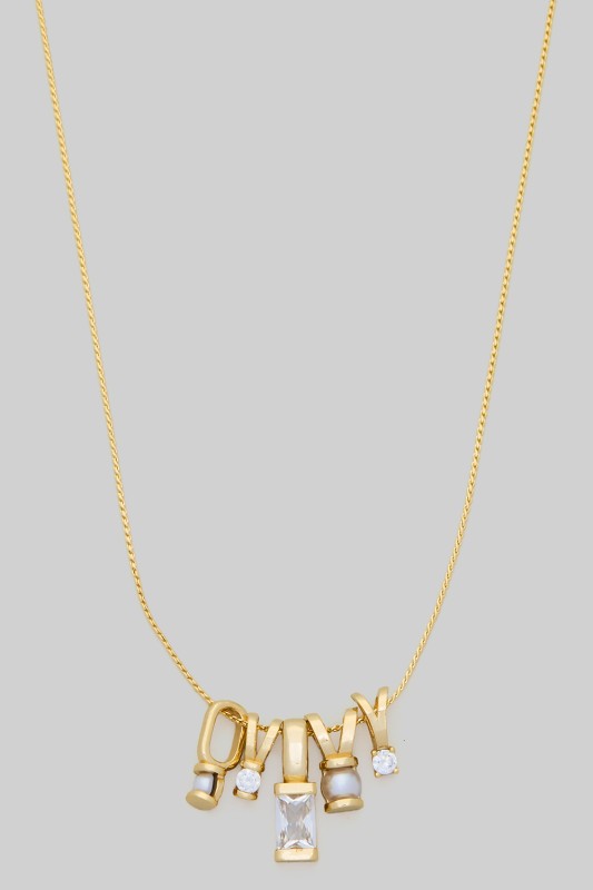 Five Tiny Cz Baguette Charmed Brass Necklace Please register or log in to view prices. FIVE TINY CZ BAGUETTE CHARMED BRASS NECKLACE. LENGTH 16+3".Units in Prepack: 2Price per unit: $4.00