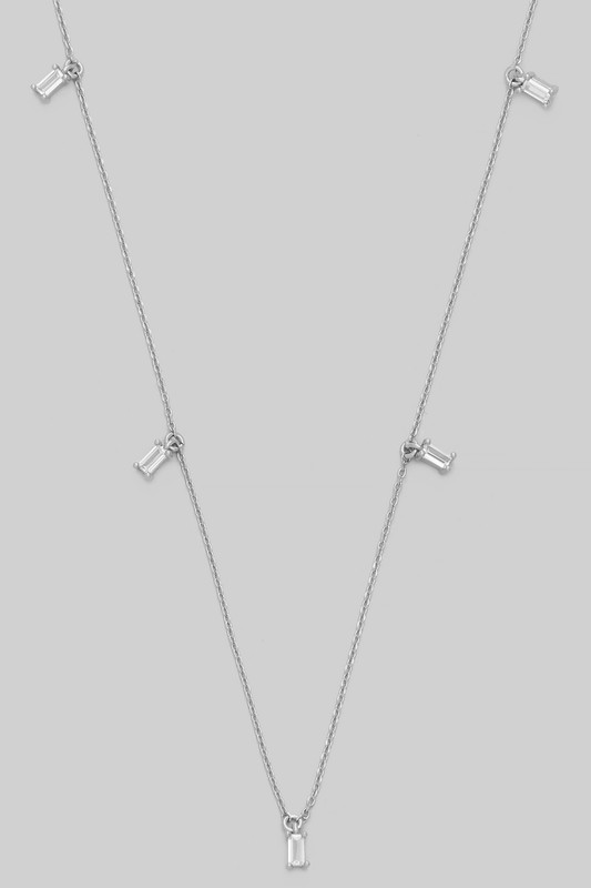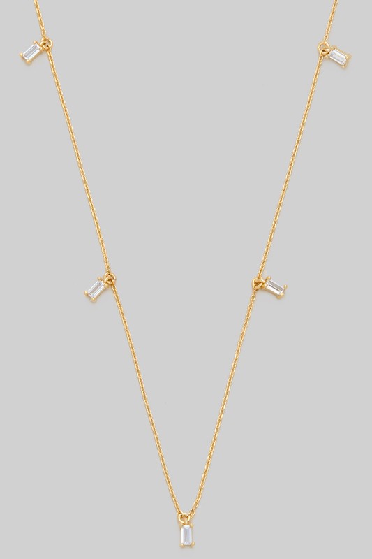 Five Tiny Cz Baguette Charmed Brass Necklace
