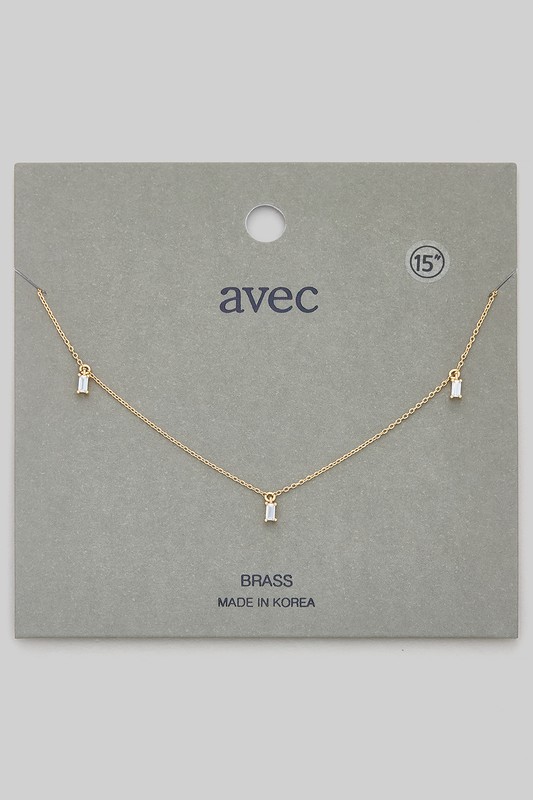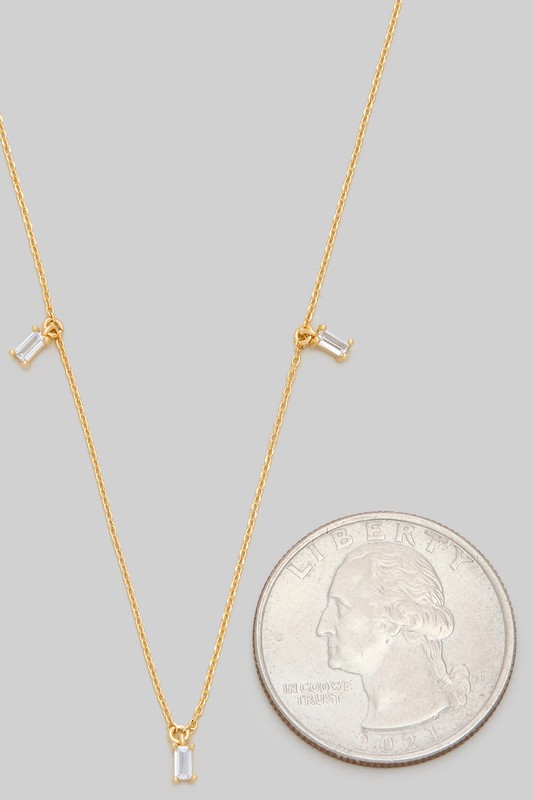 Five Tiny Cz Baguette Charmed Brass Necklace