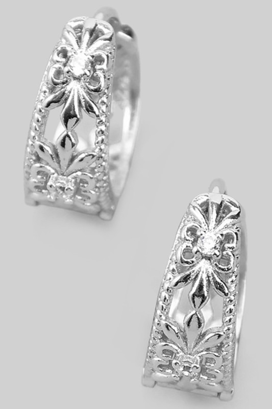 Textured Cut Out Hoops With Cz Stars Please register or log in to view prices. Radiant textured cut out hoops shimmer with sparkling cubic zirconia star accents adding celestial c…