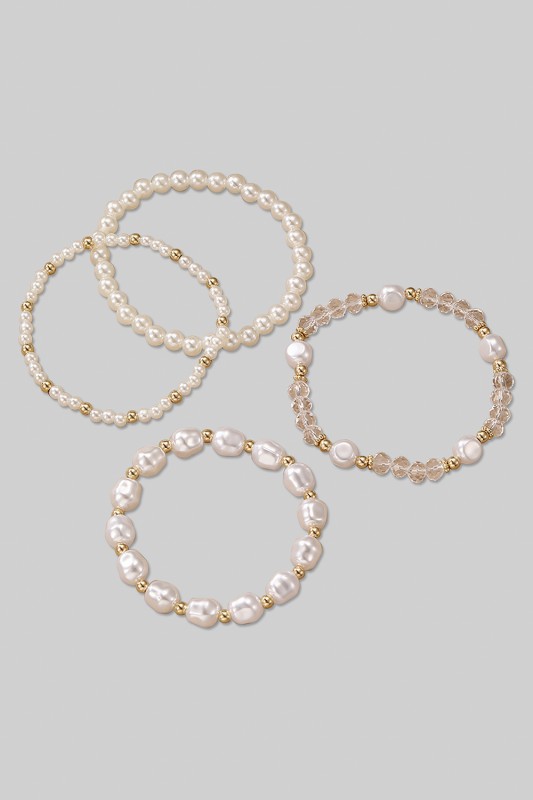 Four Piece Ccb Pearl And Stone Stretch Bracelet Se Please register or log in to view prices. Elevate your look with this four piece CCB pearl and stone stretch bracelet set. Each bracelet featu…