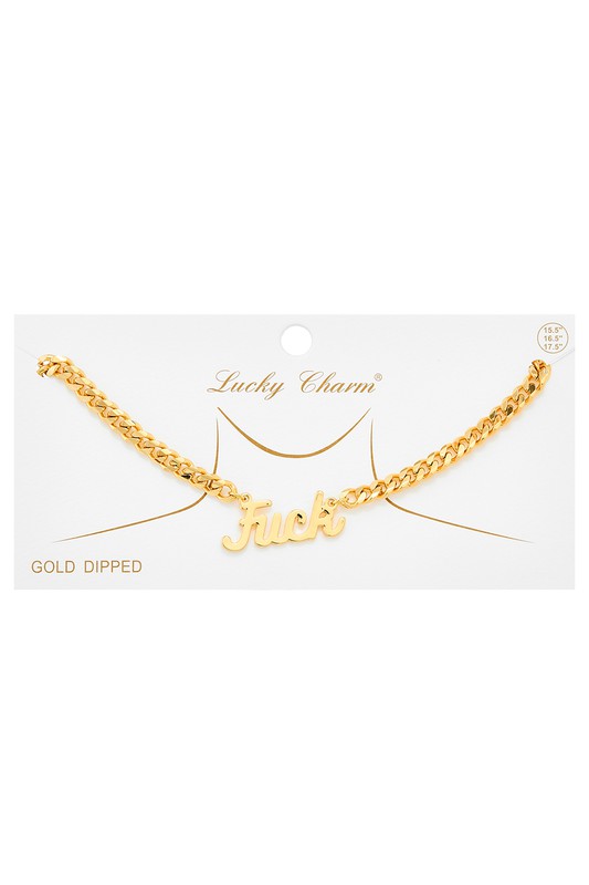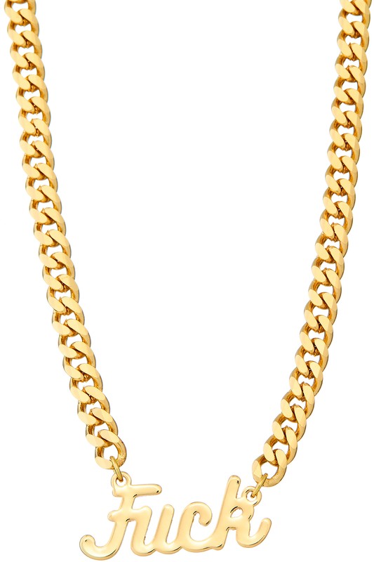 Fuck Pendant Chain Necklace Please register or log in to view prices. Gold dipped, cursive "Fuck" pendant Cuban chain necklace. Approx. length "15.5+2." Units in Prepack:…