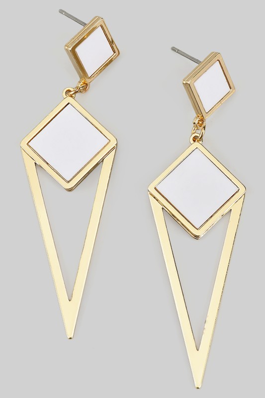 18K Gold Dipped Two Tone Geo Drop Earrings Please register or log in to view prices. Elevate your style with these stunning 18K gold dipped two tone geo drop earrings. With a sleek mode…
