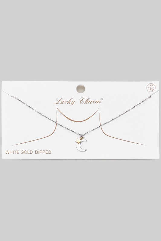 Gold Dipped Moon Pendant Necklace Please register or log in to view prices. Gold or white gold dipped, Mother of Pearl crescent moon and sparking star pendant dainty necklace. …
