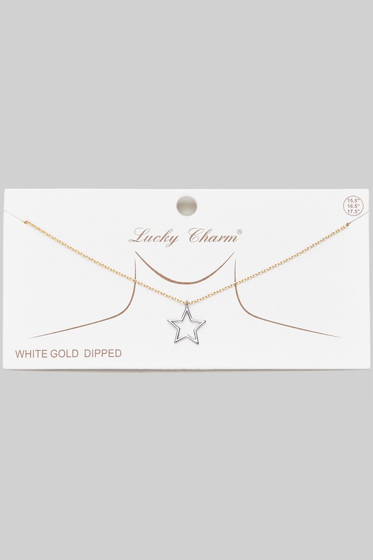 18K Gold Dipped Porcelain Star Pendant Necklace Please register or log in to view prices. Add a little love to your look with this 18K gold dipped necklace featuring a sweet porcelain star p…