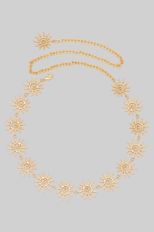Spiral Link Chain Belt Please register or log in to view prices. Make a statement with our Spiral Link Chain Belt, adjustable from 25 to 40 inches for the perfect fi…