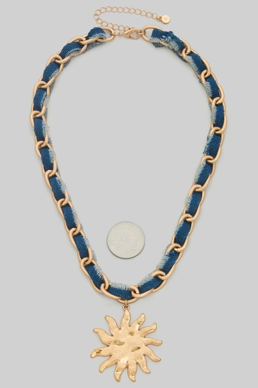 Leaf Sun Pendant Necklace Please register or log in to view prices. Tropical leaf and sun pendant layered necklace. Approx. length "16+3".Units in Prepack: 3Price per u…