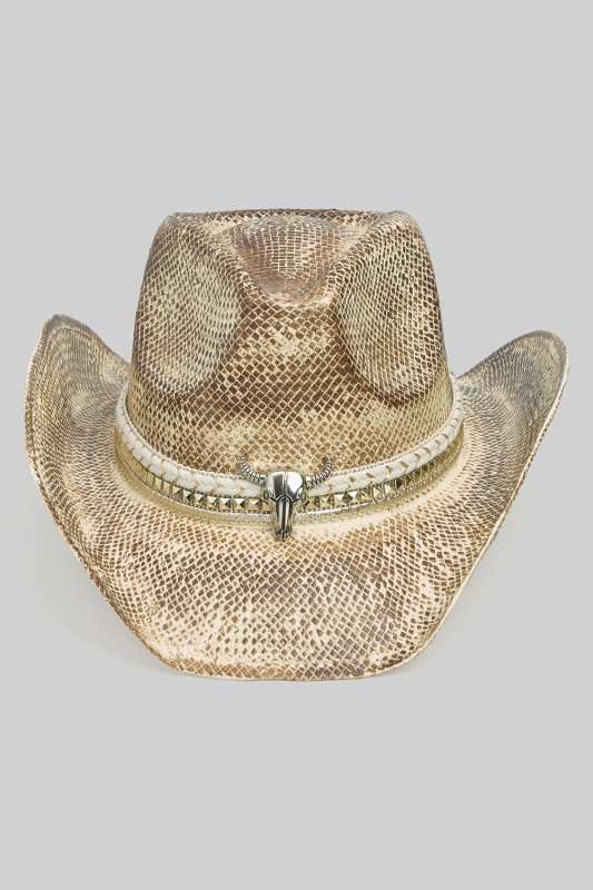 Handmade Cowboy Hat W Silver Bull And Multiple Ban