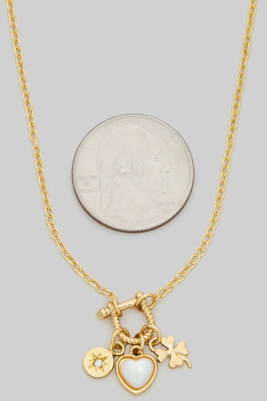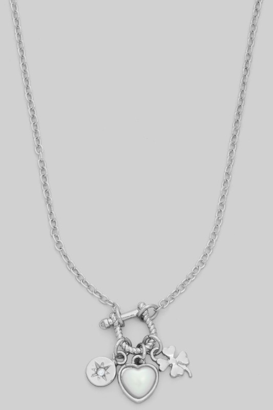 Three Clover Charm Necklace Please register or log in to view prices. THREE CLOVER CHARM NECKLACE. LENGTH 16+3".Units in Prepack: 2Price per unit: $3.50