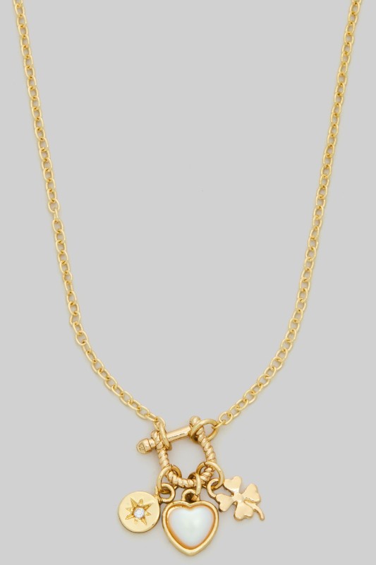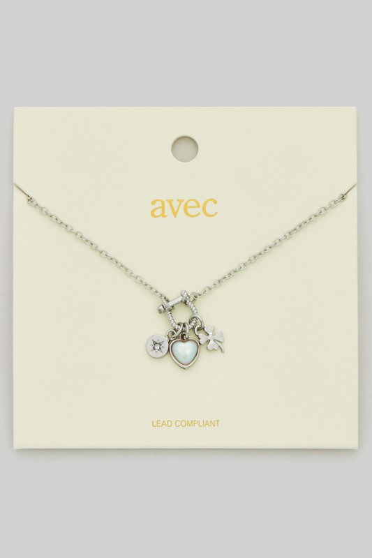 Three Clover Charm Necklace Please register or log in to view prices. THREE CLOVER CHARM NECKLACE. LENGTH 16+3".Units in Prepack: 2Price per unit: $3.50