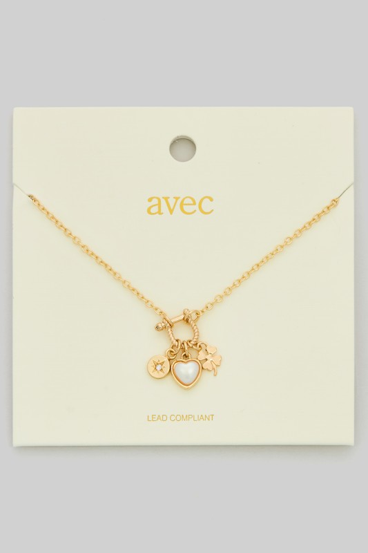 Three Clover Charm Necklace Please register or log in to view prices. THREE CLOVER CHARM NECKLACE. LENGTH 16+3".Units in Prepack: 2Price per unit: $3.50