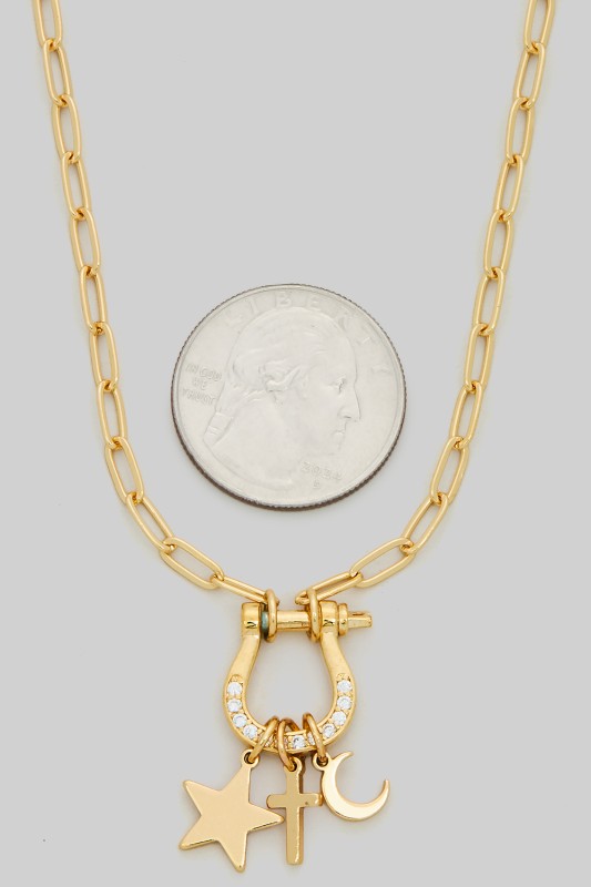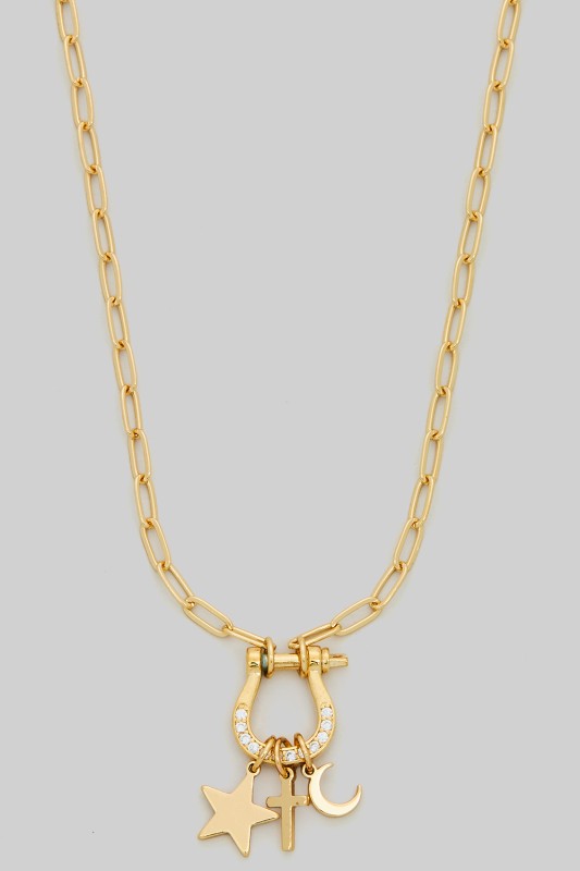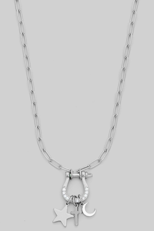 Horsebit Carabine Western Charm Necklace Please register or log in to view prices. Saddle up in style with this horsebit carabine western charm necklace. Crafted with gleaming metal l…