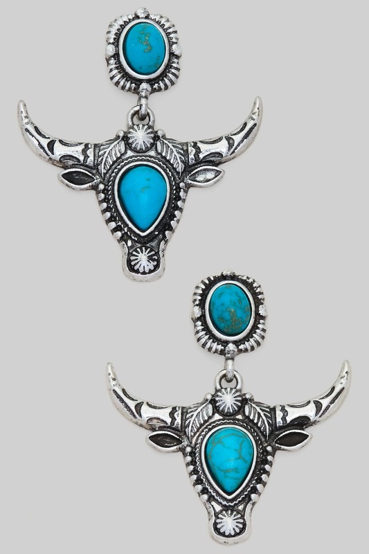Hypoallergenic Bull Skull Turquoise Drop Earrings