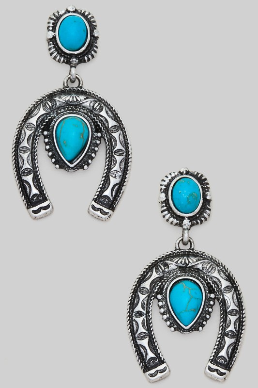 Hypoallergenic Horse Shoe Turquoise Drop Earrings
